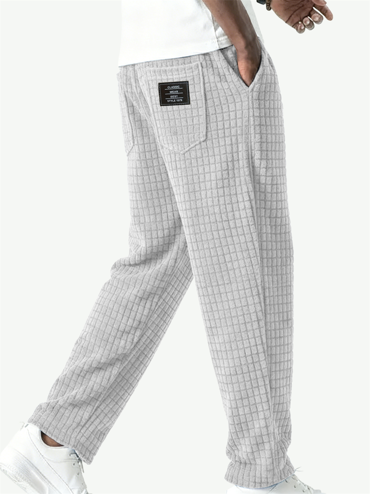 Herren Vintage Corduroy Waffelstruktur Lockere Einfache Bestickte Etikettenhose